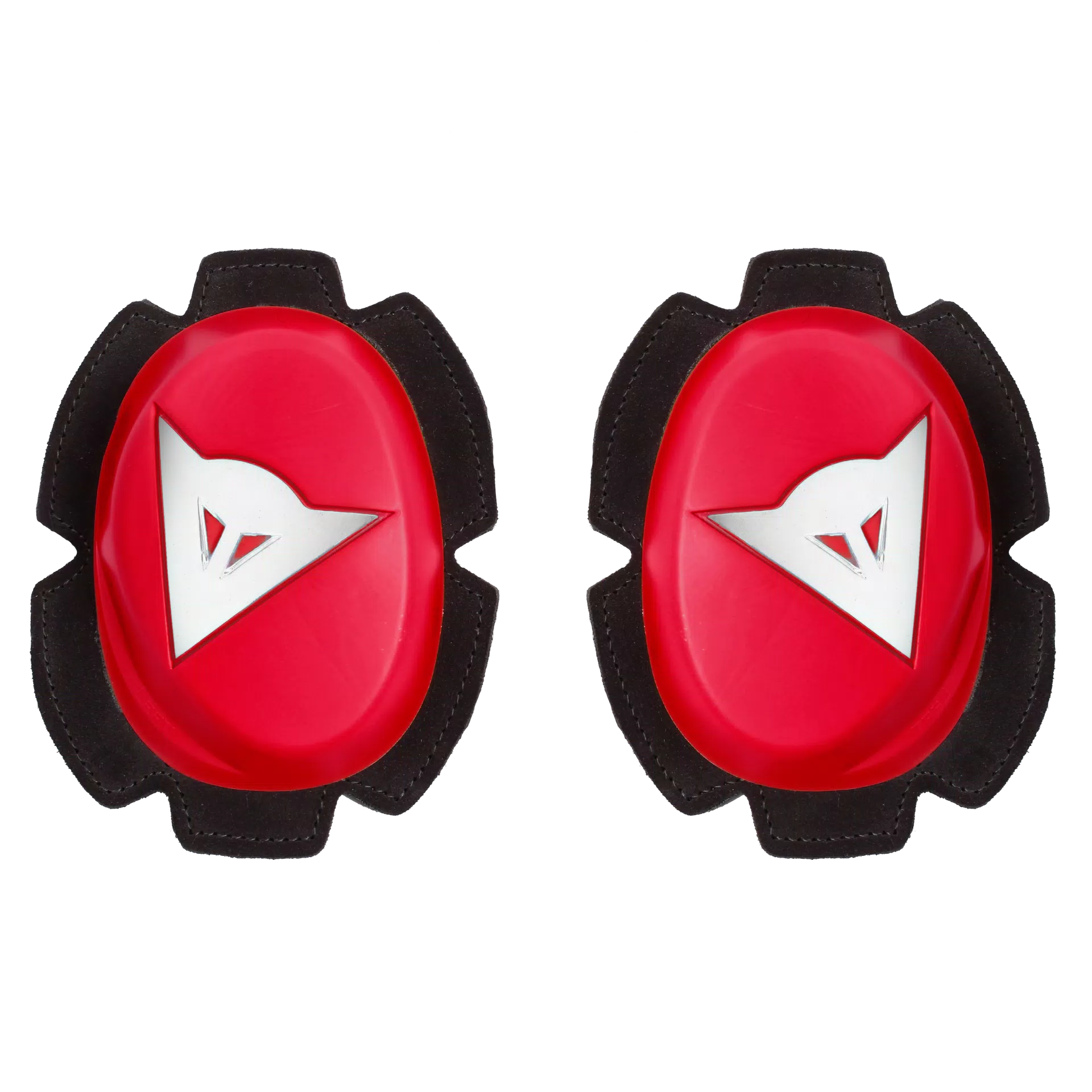 Dainese Pista Knee Slider Red White: These red-white knee sliders combine striking aesthetics with exceptional abrasion resistance for high-performance track riding.