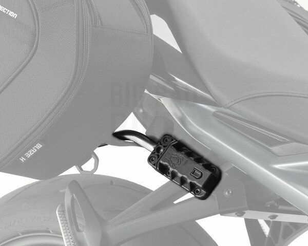 SW Motech brings you the Blaze Pannier Brackets for the Street Triple 675. The two Quick Lock supports ensures the Blaze bags dont interfere with the rear tire or suspension. The Quick Lock supports have a mount that attaches to the passenger footpeg, and when removed only the low profile black mount remains. The bags have channels on the inside surface that slide onto the Quick Lock supports. Snap on straps secure the front of the bags to the rear footpegs for additional stability.