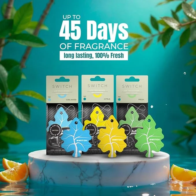 Overview Elevate your environment with the refreshing and uplifting fragrance of the Switch Citrus air freshener. This aromatic design is easy to place and offers a long-lasting, consistent scent, perfect for your car, wardrobe, or any space needing a burst of energy. Key Features Eco-Friendly Fragrance: Made from natural oils and is 100% alcohol-free. Consistent Scent Delivery: Provides a long-lasting and reliable fragrance experience. Versatile Placement: Designed for easy placement in cars, wardrobes, shoe racks, and more. Biodegradable: 100% biodegradable and easy to dispose of. Citrus Scent: Provides an uplifting and energizing aroma. Specifications Fragrance Citrus